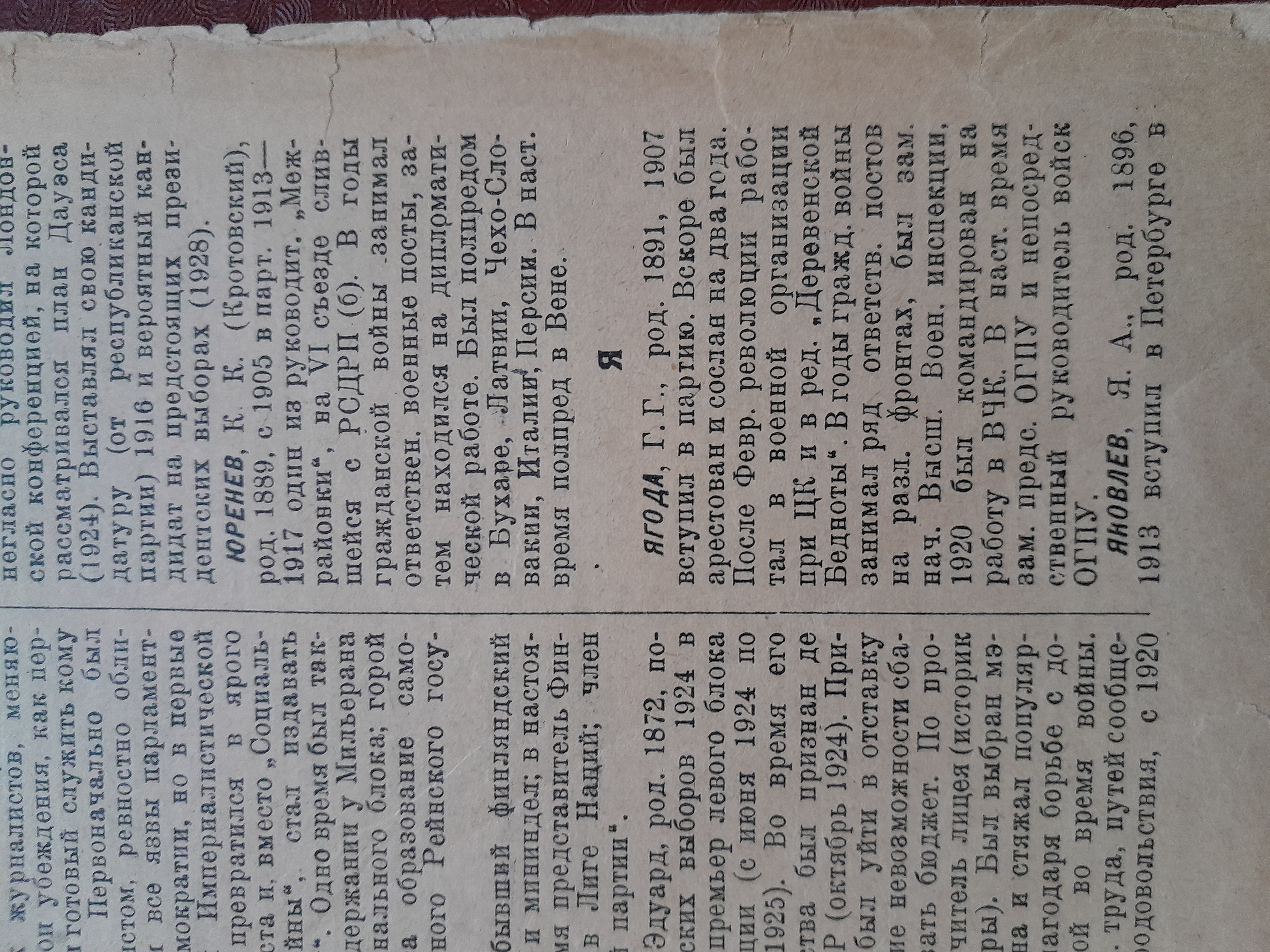 Сам словарь строился по немецкому изданию «Малый Брокгауз» и мог выйти ещё в 1926 году, но большевистская цензура заставила переделать некоторые статьи, и целый год в него вносили правки. Вот, например, биография Генриха Ягоды, на тот период он ещё заместитель председателя ОГПУ. Но пройдёт 12 лет, и он тоже попадёт под каток сталинской репрессивной машины. Хоть Ягода птица невысокого полёта, всего лишь зам.министра, но попал в словарь. Думаю, эти два тома мне пригодятся, когда буду продолжать историю Клима Ардашева после 1920 года.